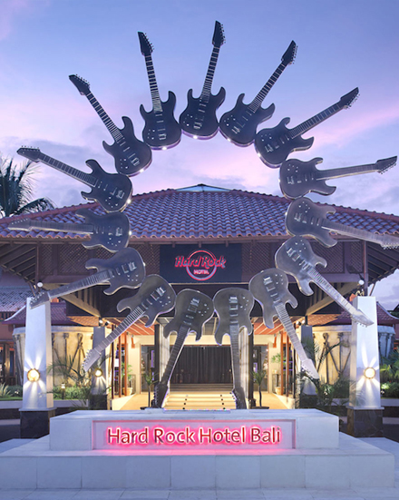 . Relish in the modern comfort of the music-inspired hotel rooms and suites before making a splash in the largest free-form pool in all of Bali.